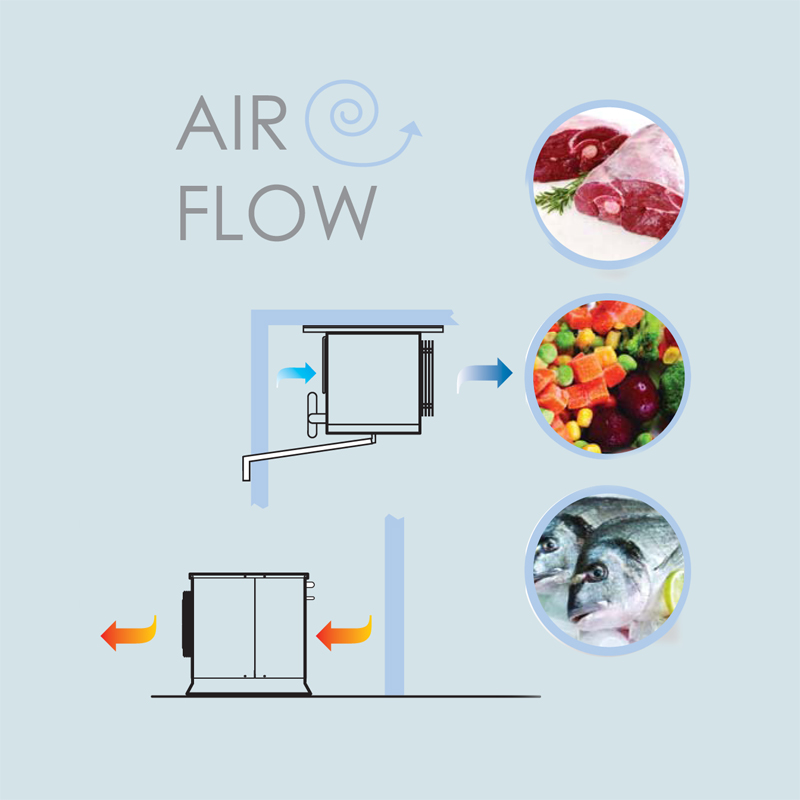 - Condensing unit installation on the external floor of the cold room as well as evaporator installation on the ceiling inside the cold room.